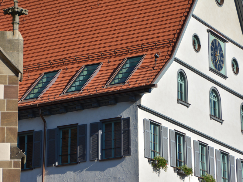 Mit einem Farbakzent machen die Fenster des Gebäudes den Vorübergehenden schöne Augen. Die historischen Giebelfenster aus dem 19. und frühen 20. Jahrhundert wurden weitgehend erhalten. Nur die Fenster aus den 1970er Jahren wurden komplett erneuert. Bei ihren Profilen wurde um jeden Millimeter gerungen.